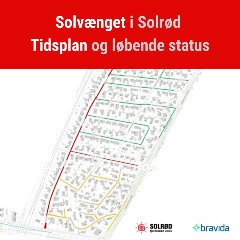 Klik på kortet til højre og se, hvornår vi kommer til din vej i Solvænget-kvarteret. På kortet kan du se, på hvilke veje vi har færdiggjort gravearbejdet og hvilke veje, der er projekteret til at påbegynde gravearbejdet med angivet måned og årstal.